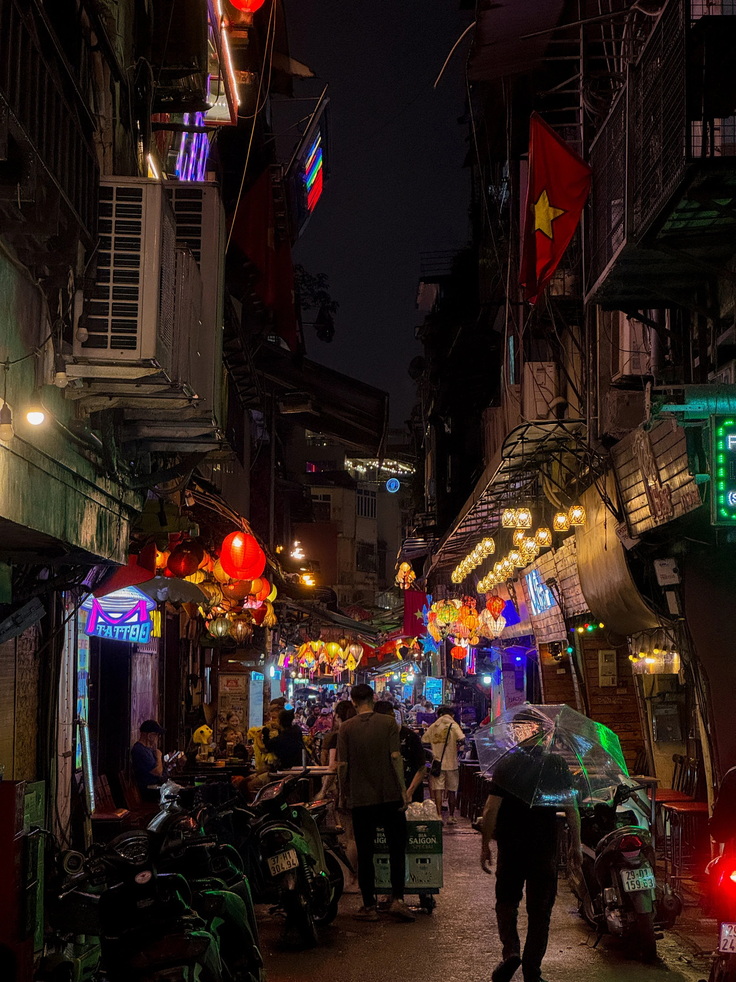 I don’t make it all that far on my first day, tired and disorientated as I am. I wander briefly around the Old Quarter, my home for the first few days here, and stop for a light dinner of bánh mì steps from my hotel. It’s early still, and the street is still relatively quiet. I am just finished eating when the cry goes up from somewhere down the street. All at once, the street springs to life.